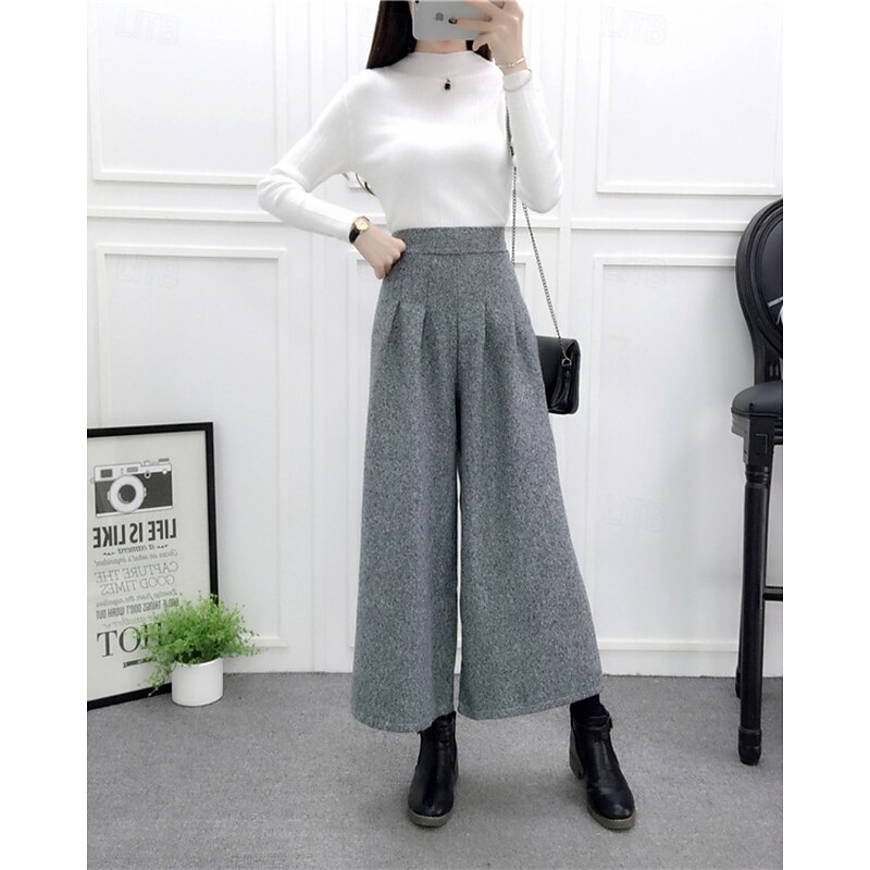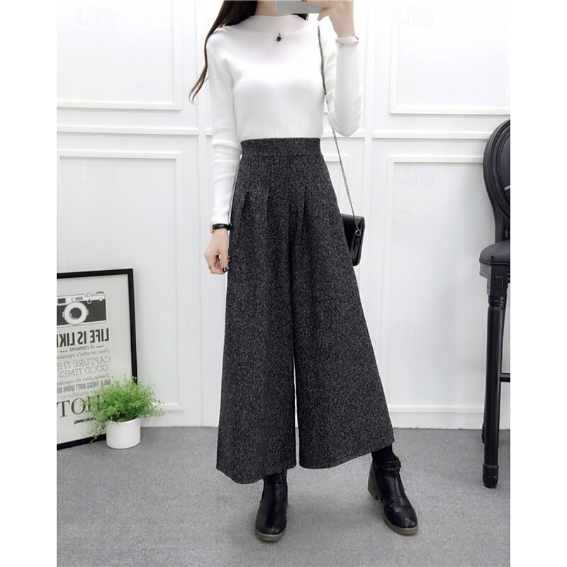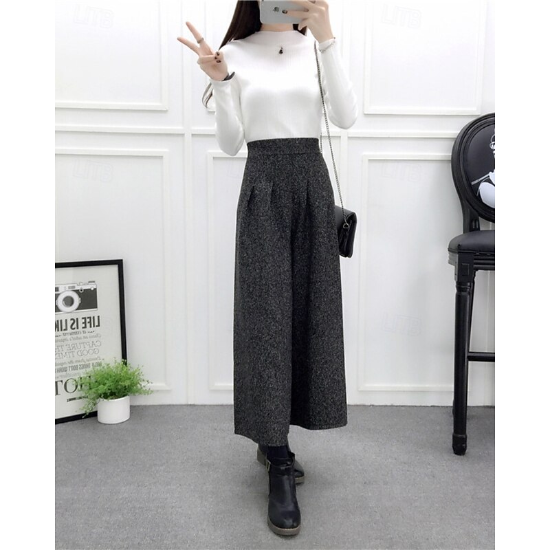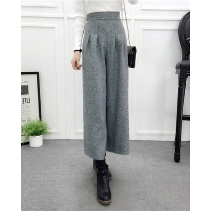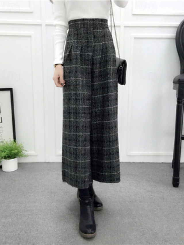 More information about Women's Chinos Straight Streetwear Casual Ankle-Length Medium Waist Plain Plaid Checkered Elastic Waist Comfortable Micro-elastic Outdoor Vacation Street Black Grey Light Gray Dark-Gray Black Fall