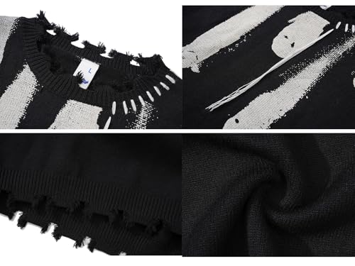 SOPHILECAL Ghost Pattern Sweater Oversized Sweater Long Sleeve Knitted Sweater Unisex Streetwear Pullover 5