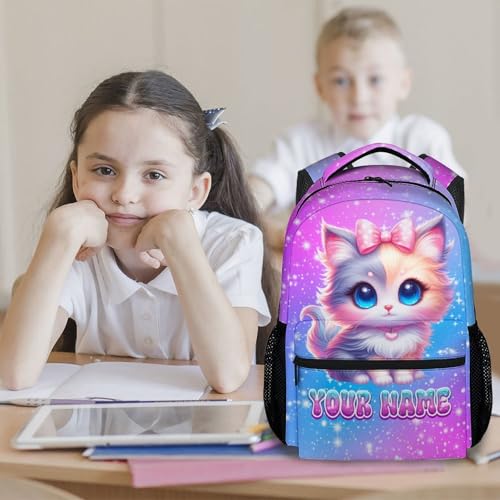 Personalized Backpack for Girls - Cat Backpacks for Kids Ages 6-8, 17 Inch Custom Toddler School Bookbag with Name 1