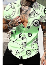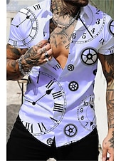 More information about Men's Clock Shirt Button Up Shirt Short Sleeve Vintage Sports Fashion Casual Daily Holiday Summer Spring Turndown Print Button-Down Light Yellow White Purple Orange Green