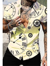 Men's Clock Shirt Button Up Shirt Short Sleeve Vintage Sports Fashion Casual Daily Holiday Summer Spring Turndown Print Button-Down Light Yellow White Purple Orange Green 7