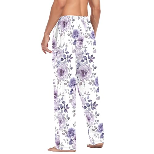 Purple Camellia Men's Pajamas Pants Cotton Sleep Bottoms Pants Lounge Sleepwear - S 6