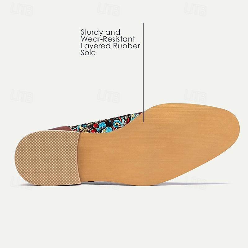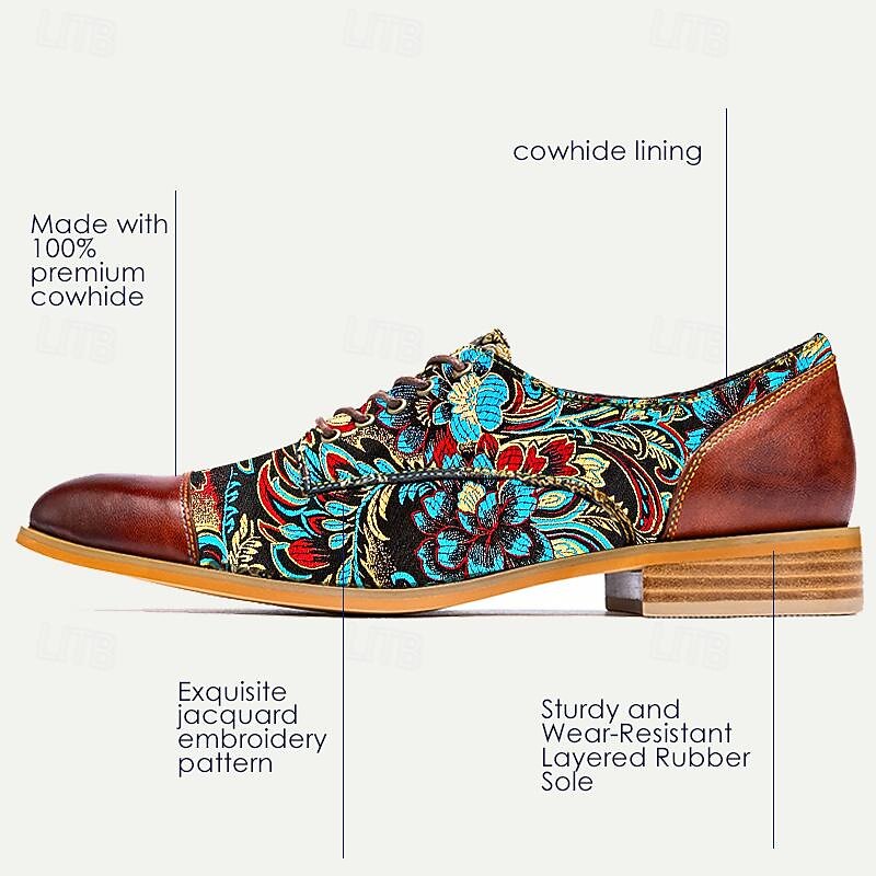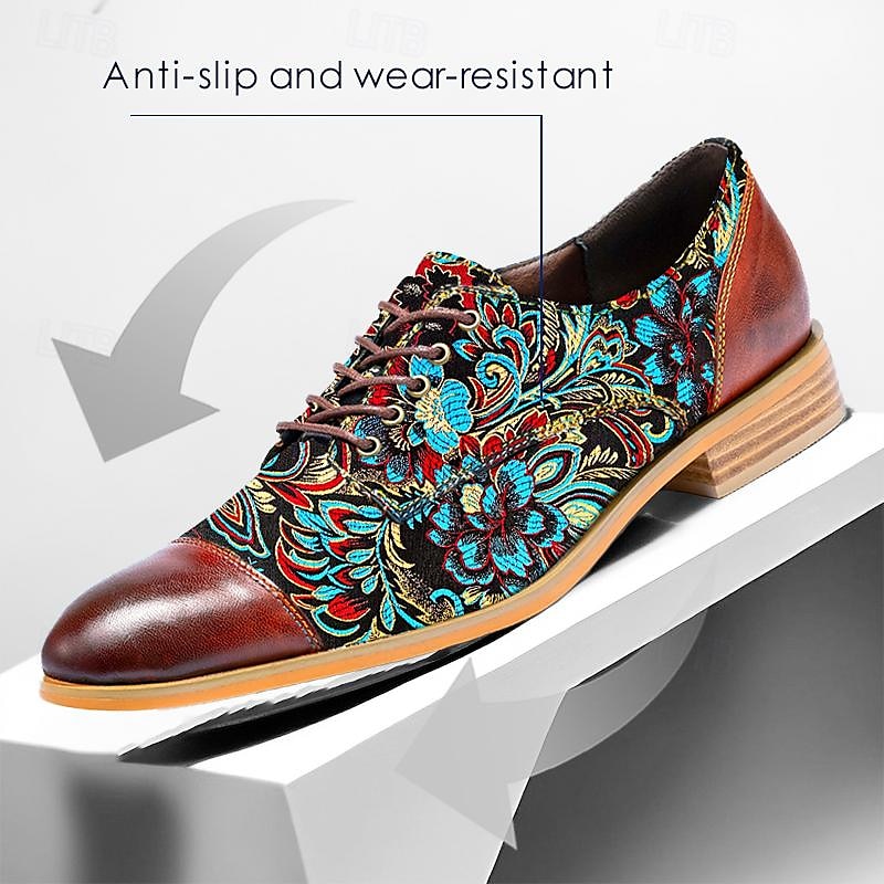 More information about Men's Retro Floral Jacquard Fabric Oxford Shoes with Leather Accents - Casual and Formal Occasions
