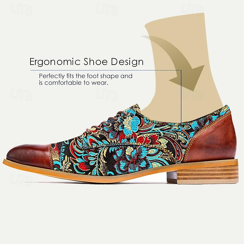 Men's Retro Floral Jacquard Fabric Oxford Shoes with Leather Accents - Casual and Formal Occasions 6
