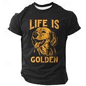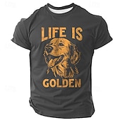 HOT ! Men's Graphic T-Shirt: Golden Retriever 'Life is Golden' Pun Short Sleeve for Dog Lovers