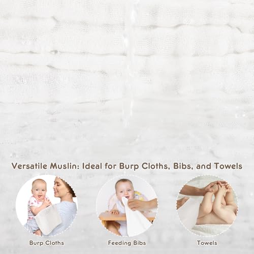 • 100% Cotton, Safe and Gentle Made from 100% natural muslin cotton, our burp cloths are soft and safe, specifically designed for your baby's delicate skin. Lightweight, breathable, and non-irritating, perfect for use on the face, hands, and body.