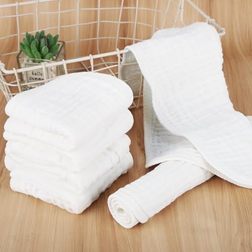 HOT ! Muslin Burp Cloths Set for Babies 100% Cotton Baby Washcloths, Large 20''x10'' Extra Absorbent and Soft 10 Pack for Boys & Girls White