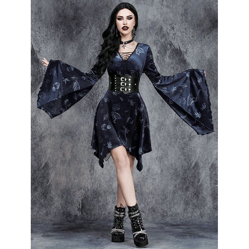 $36.99 - Gothic Mini Dress Bell Sleeve Witch Velvet Asymmetrical Hem Fancy Dress Women's Fantasy Halloween Carnival Performance Party Adults Dress 2025. Shop for cheap Dresses online? Buy at lightinthebox.com on sale today!