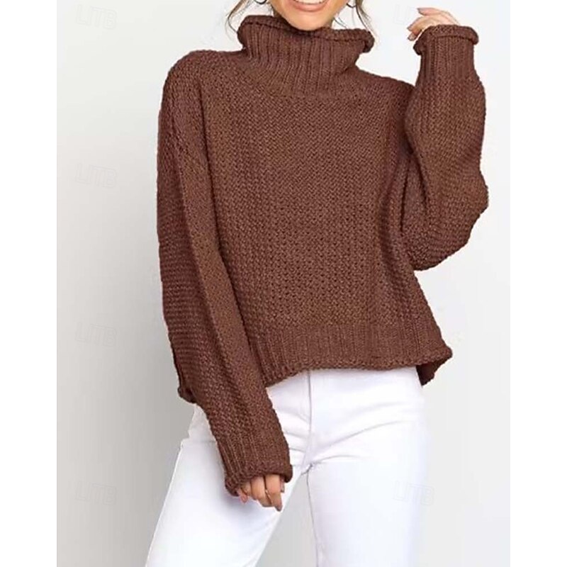 More information about Women's Sweater Turtleneck Textured Knit Textured Fall Winter Going out Elegant Fashion Daily Long Sleeve Solid Color Orange Brown
