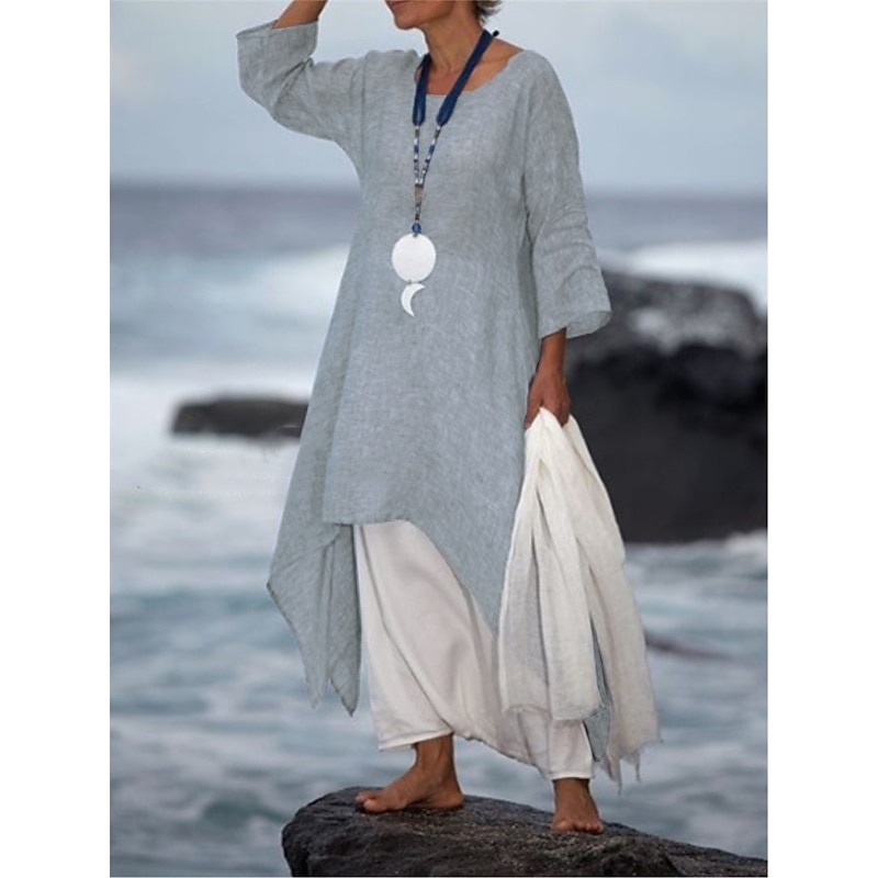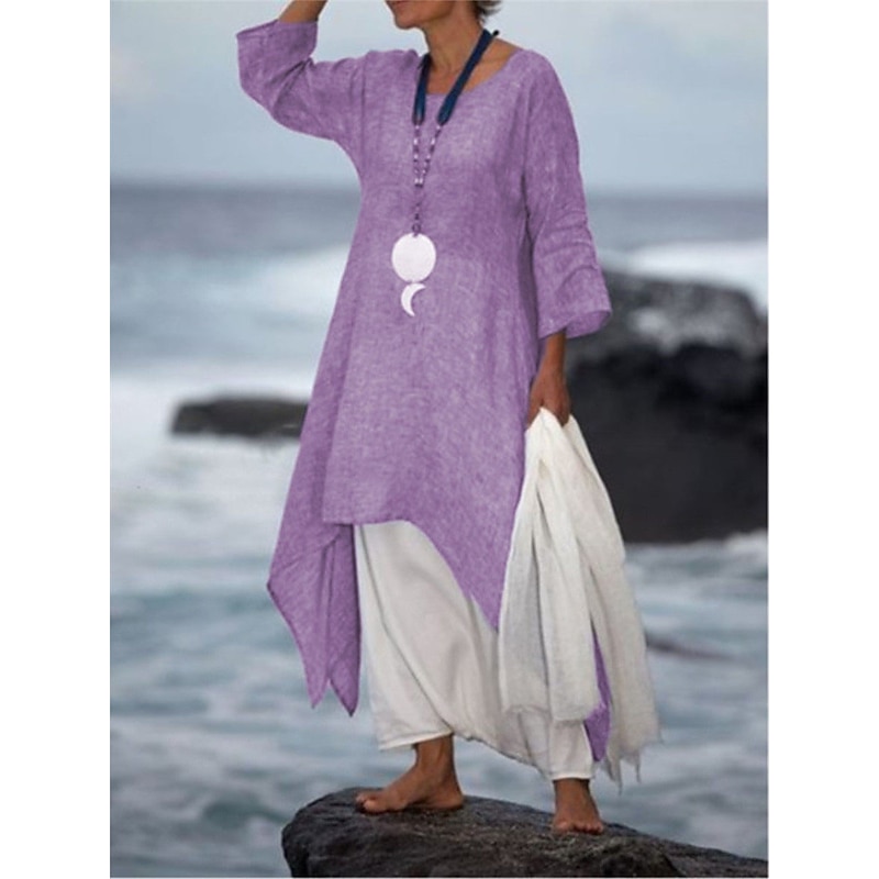 More information about Women's White Blue Purple Summer Spring Midi Dress Linen-Inspired Dresses Casual Dress Spring Dress Basic Casual Outdoor Daily Weekend Regular Fit Pure Color Crew Neck