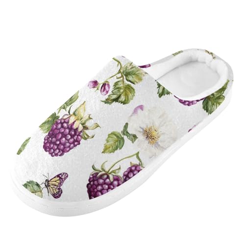 JUNZAN Fresh Dewberry Fruit White Women Cotton Slippers Warm Memory Foam Foam Slippers for Hotel Funny Presents 6-7 4