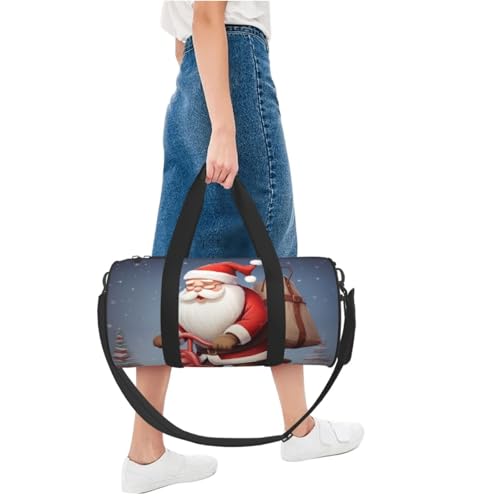 HOT ! santa claus on scooter Duffle Bag for Women Men Personal Item Travel Bags Canvas Weekender Overnight Bag Lightweight Sports Tote Gym Bags Carry On Luggage Bag