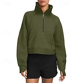 More information about Women's Pullover Sweatshirt Sweatshirts Plain Streetwear Casual Long Sleeve Turtleneck Regular Tops Street Holiday Half Zipper Quarter Zipper Zipper Pocket Black Army Green Beige Fall Winter