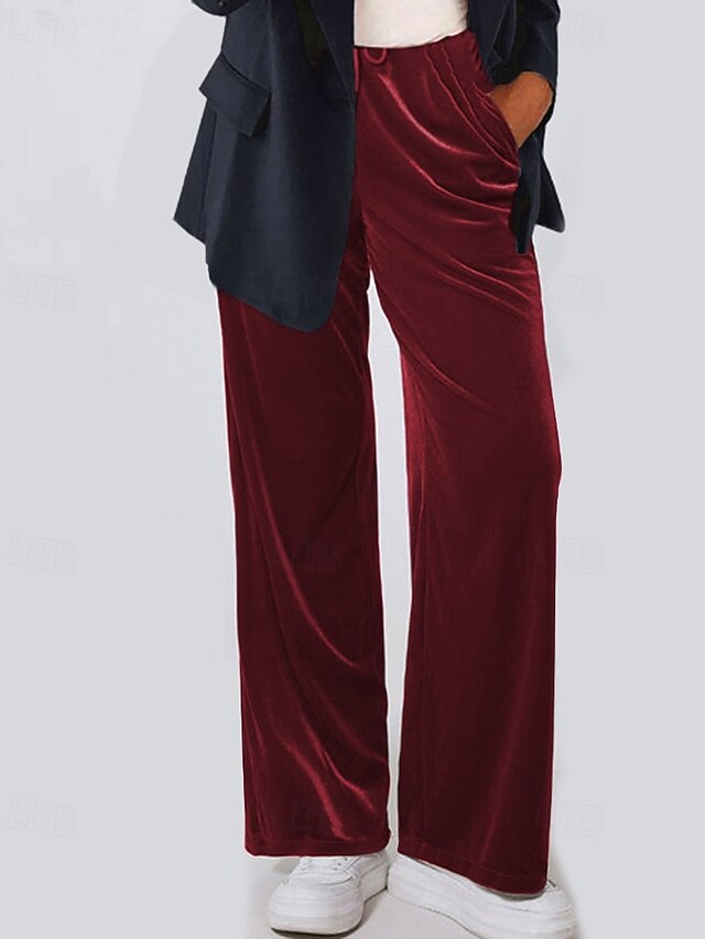 Why Choose Women's Wide Leg Corduroy Pants Slacks Streetwear Casual Full Length Natural Plain Pocket Elastic Waist snug Street Holiday Daily Wear Maroon Dark red Depression Green Black Fall Regular Fit?