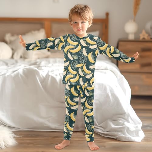 ALAZA Banana Leaf Palm Leveas 2 Piece Pajama Set Long Sleeve Top and Pants Sleepwear Unisex 2
