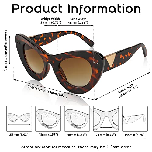 • Unique Cat Eye Design - The contrast between the oversized widened thick frame and the lens is more modern and retro. Colorful frame and cool cat eye design are playful and fashionable.