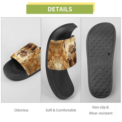 Dreamcatchers Bison House Slippers for Women Men Lightweight Open-toe Slide Shoes for Bathroom Swimming Beach 3