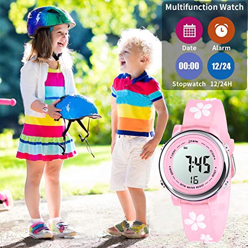 Kids Watch 3D Cartoon Toddler Wrist Digital Watch Waterproof 7 Color Lights with Alarm Stopwatch for 3-10 Year Boys Girls Little Child (Flower Pink) 7