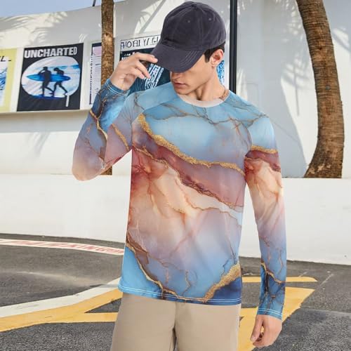 Marble Blue Red Men's Rash Guard Fishing Elasticity UV Sun Protection Water Fishing 3