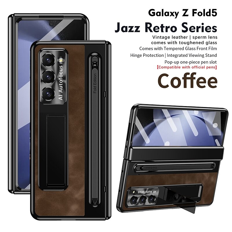More information about Phone Case For Samsung Galaxy Z Fold 7 Z Fold 6 Z Fold 5 Z Fold 4 Back Cover with Screen Protector Full Body Protective Camera Lens Protector Retro Armor PC PU Leather