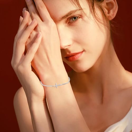 More information about Midir&Etain Cross Bracelet 925 Sterling Silver Faith Christian Religious Anklet Bracelet Christian Cross Jewelry Gifts for Women