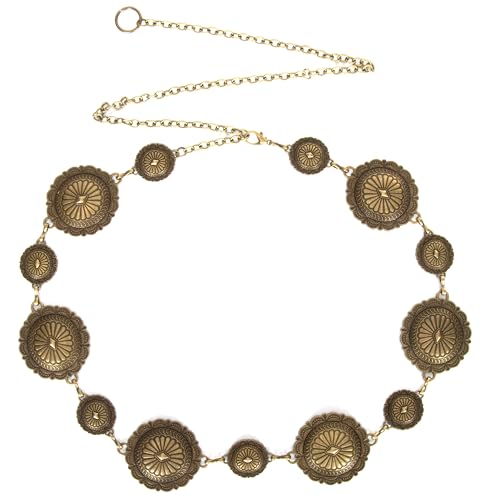 More information about Metal-Concho-Chain-Belt for Women Vintage Western-Cowgirl-Belt Golden Boho-Waist-Link for Dress Sweater