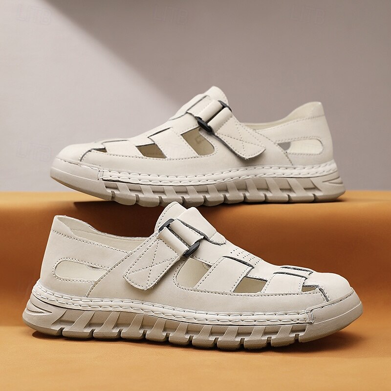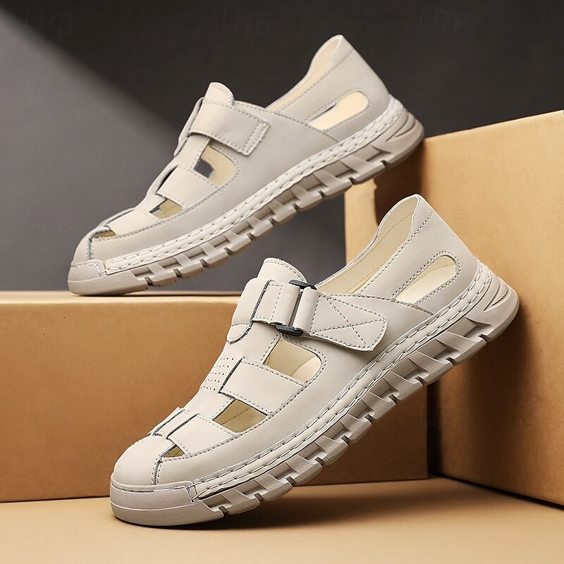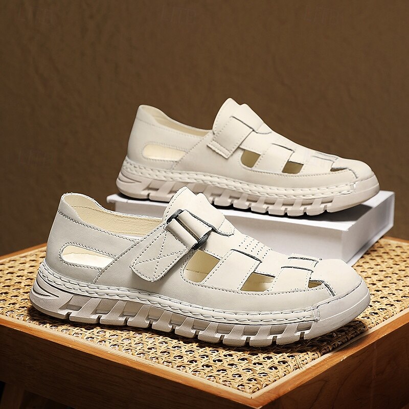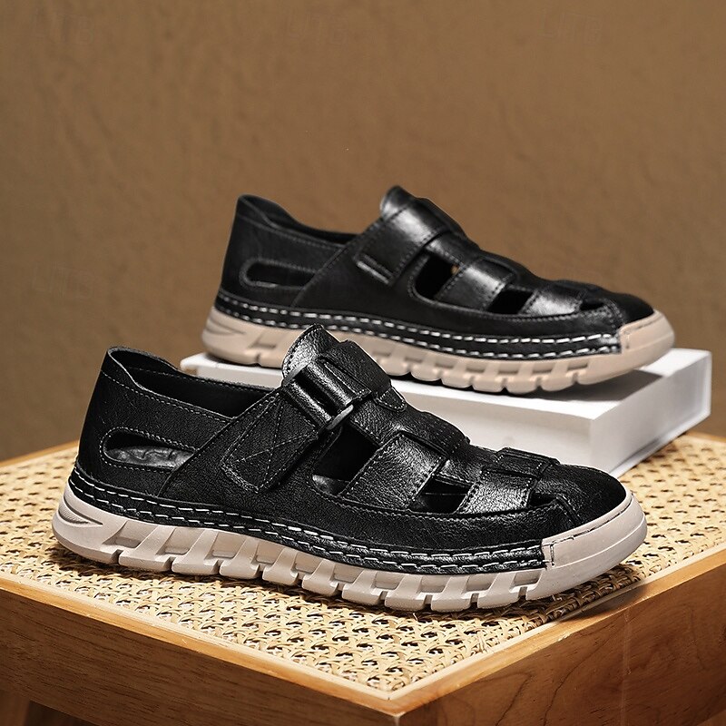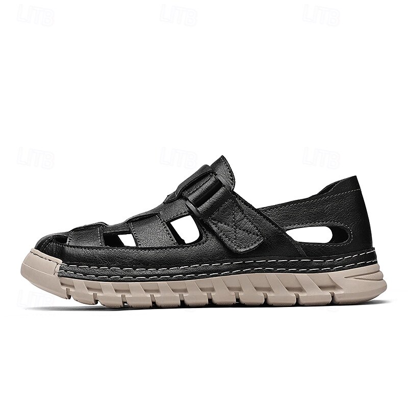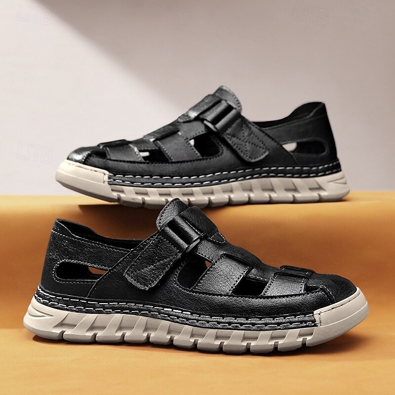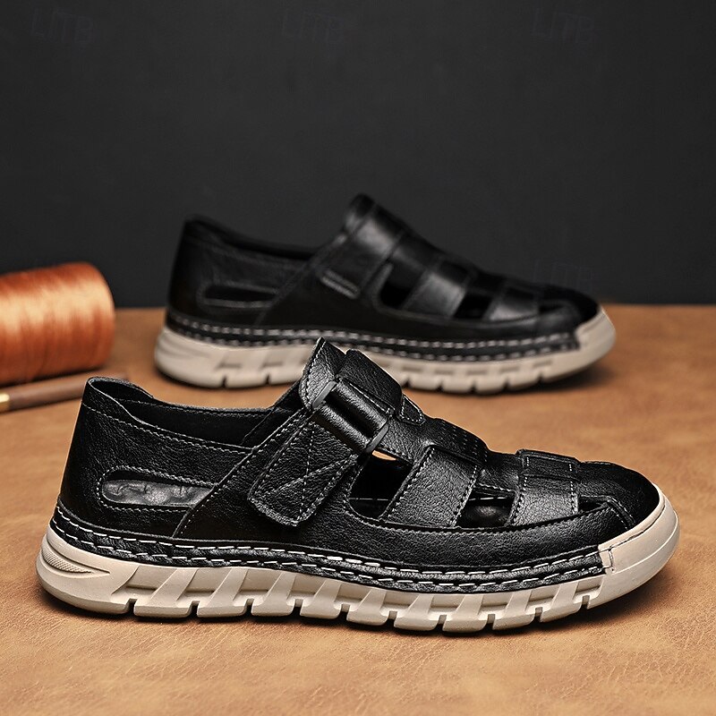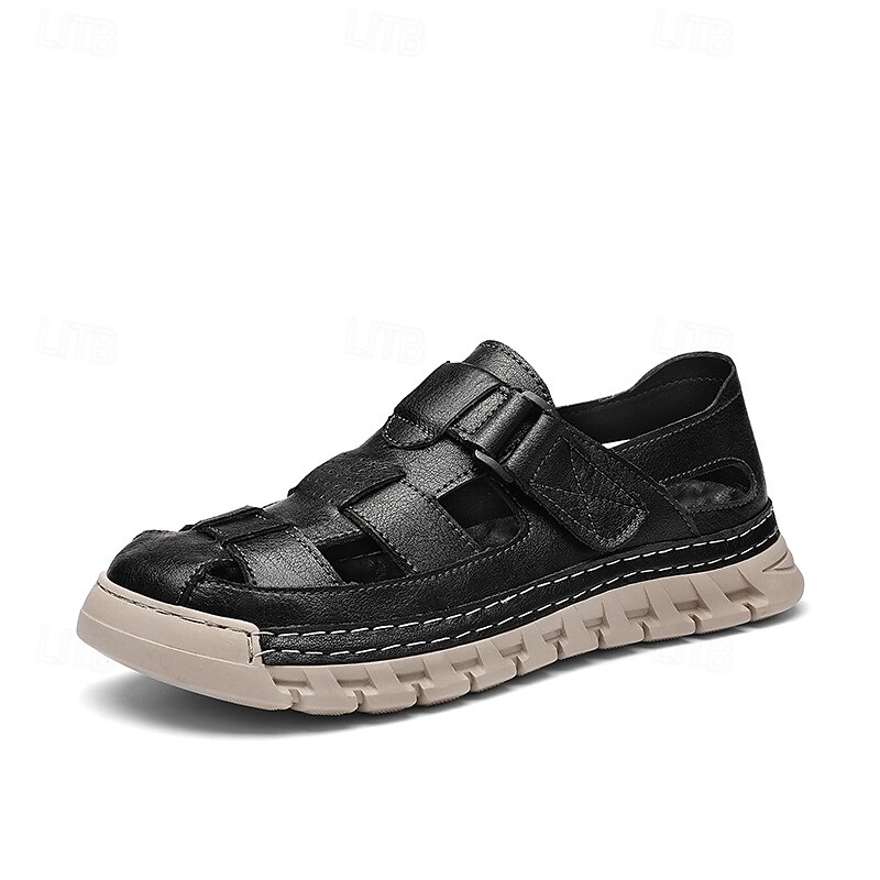HOT ! Men's Brown Faux Leather Fisherman Sandals – Comfortable Velcro Strapped Outdoor Shoes for Summer and Casual Wear