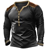 More information about Men's Button T Shirt T Shirt Henley Shirt Tee Top Long Sleeve Henley Spring & Fall Color Block Fashion Designer Basic Patchwork Vacation Street Going out Black Blue Army Green Top Tee for Men