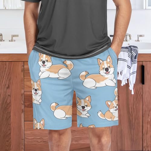 Pajama Shorts for Men, Men's Pajama Bottoms Sleepwear Cute Corgi