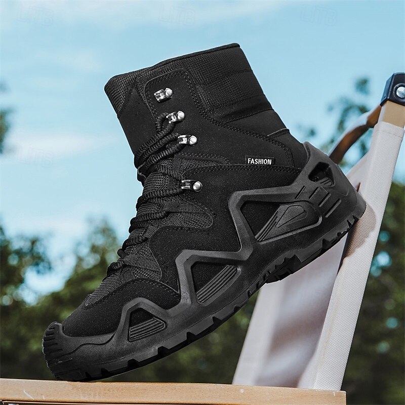 HOT ! Men's Beige High Top Hiking Boots with Breathable Mesh Design, Lightweight Outdoor Trekking Shoes for Camping, Travel, and Adventure Sports