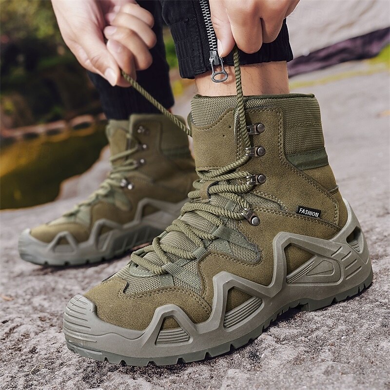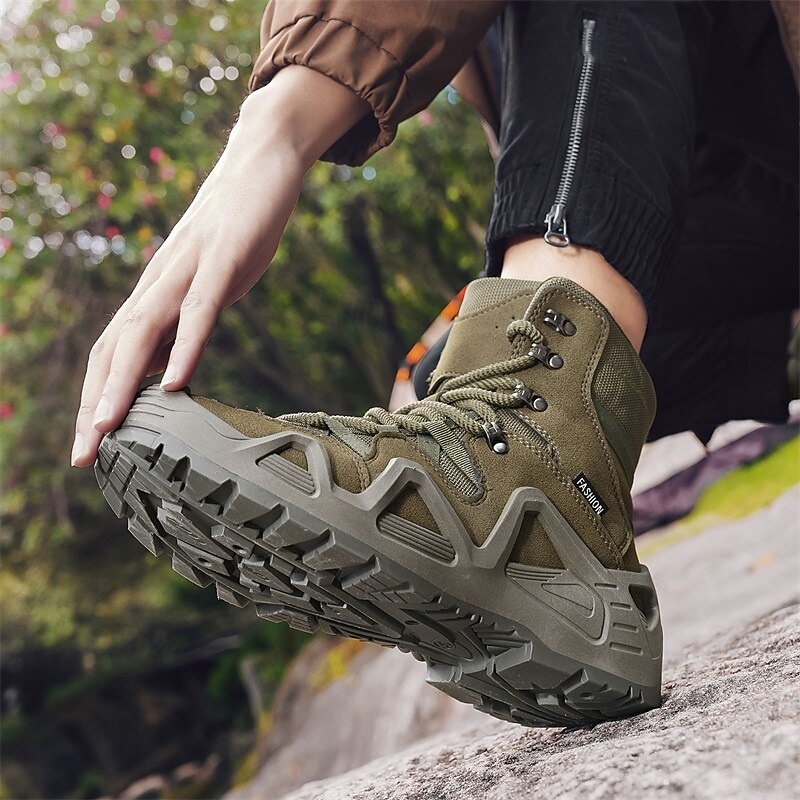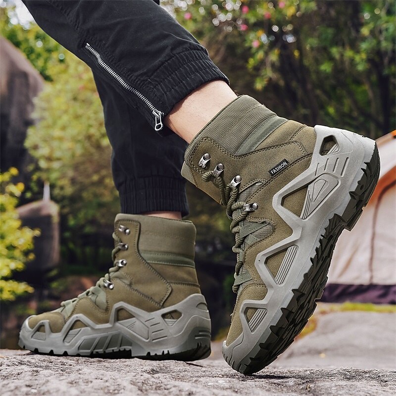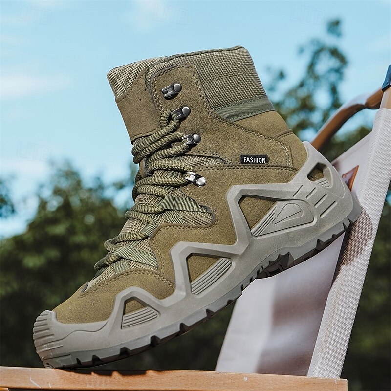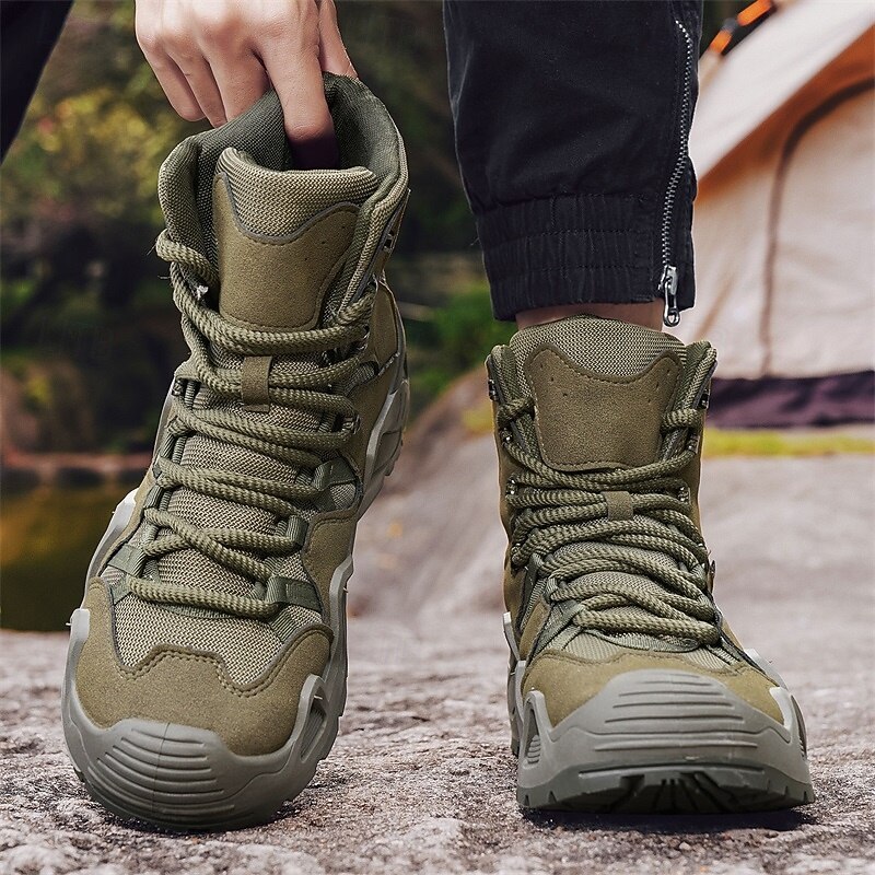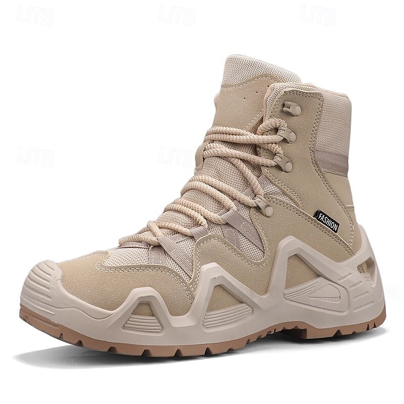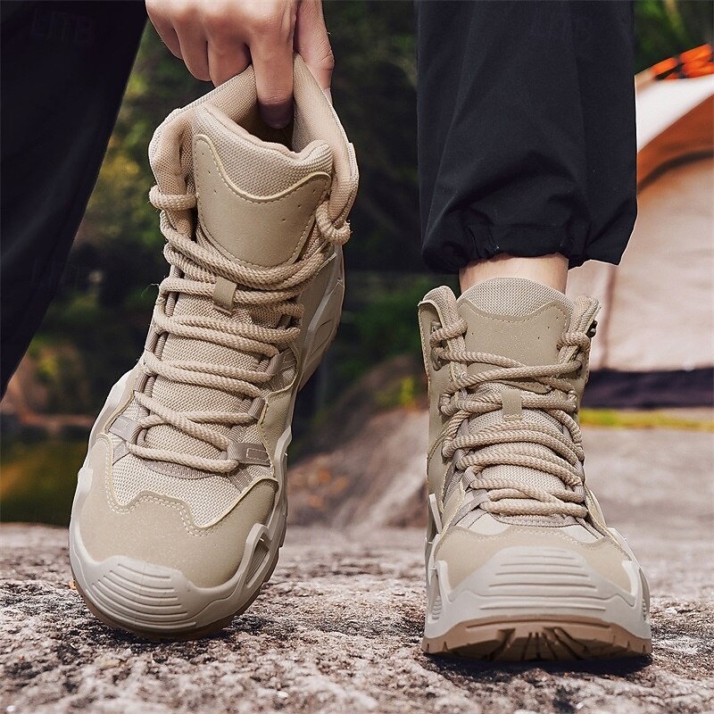 Men's Beige High Top Hiking Boots with Breathable Mesh Design, Lightweight Outdoor Trekking Shoes for Camping, Travel, and Adventure Sports 24