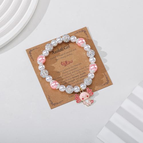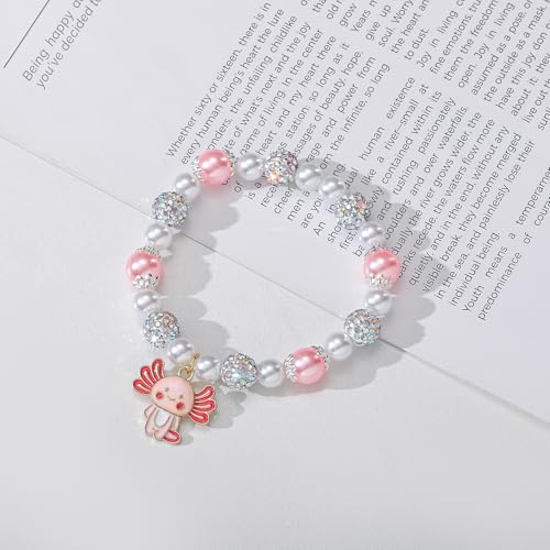Axolotl Charm Bracelet, Cute Kawaii Beaded Elastic Bracelet Axolotl Stuff Accessories for Birthday Christmas Valentines Jewelry Gifts