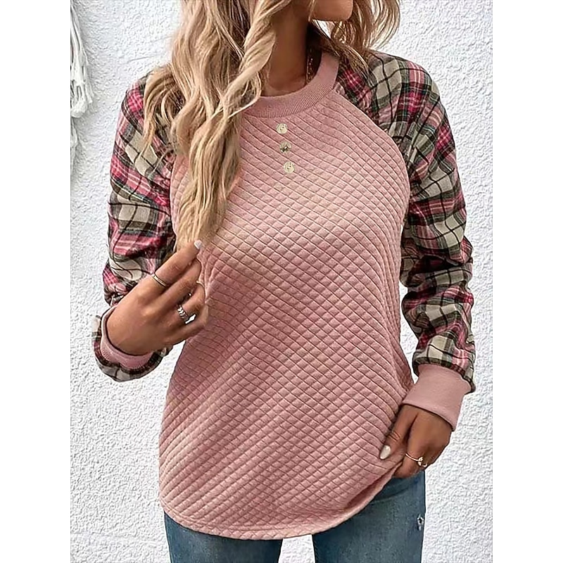 This Women's Waffle Sweatshirt Texture Sweatshirt Casual Plaid Street Dailywear Crew Neck Print Long Sleeve Pink Brown Beige Fall Winter combines elegant design with practical functionality. Every detail has been carefully considered to ensure you get the supreme possible experience. The finest construction means this product will serve you well for years to come.