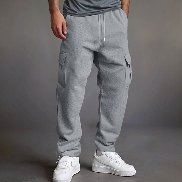 More information about Men's Cargo Pants Fleece Pants Sweatpants Joggers Trousers Elastic Waist Drawstring Multi Pocket Solid Color Plain Windproof Outdoor Full Length Casual Daily Vacation Fashion Black Royal Blue