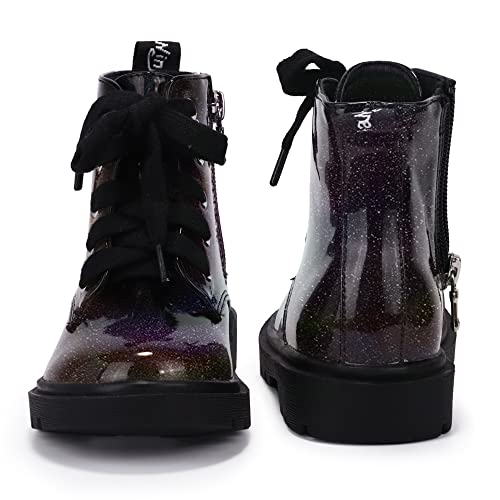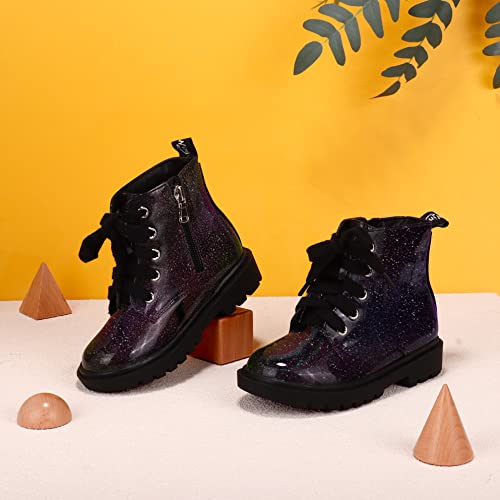 Fabric type: 100% SyntheticSole material: RubberOuter material: RubberClosure type: ZipGIRLS FAVORITE SHINY MATERIAL: The material is a combination of shiny glitter and waterproof patent, the comfortable lined inside to keep your feet cozy and warm, the breathable insole snuggles your feet to provide comfort in the movementEASY TO WEAR ON AND OFF: Girls' dress boots use a side zipper closure with a five-eyelet lace-up design, which is easy for your little one to put on or off the shoes by themselves and adjustable for a perfect fitSUITABLE FOR THE OCCASION: This is a sleek combat boot that is perfect for winter, spring, autumn, suitable for boys and girls, this pair of boots will be a nice present for birthdays, holidays, or outdoor occasionsANTI-SKID AND WEAR-RESISTANT: Textured rubber sole, non-slip and durable to protect your little girl when she is walking, dancing, or running with such a pair of comfortable ankle booties, soft and thick lining keeps feet comfortable and warm all day longHOW TO CHOOSE PERFECT SIZE: We offer our size chart in the pictures, you could choose a perfect size for your little ones. Please measure your little one's foot's length and refer to our size chart to get the right size Perfect for everyday use. superior materials and excellent craftsmanship ensure long-lasting durability.