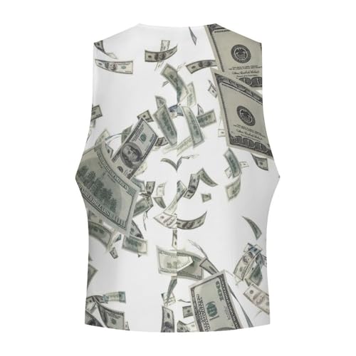 100 Dollar Flying Bills Men's Suit Vest Slim Fit V-Ncek Waistcoat Business Casual Vest 4