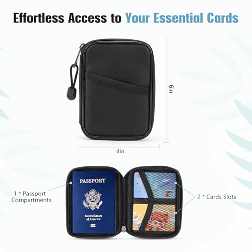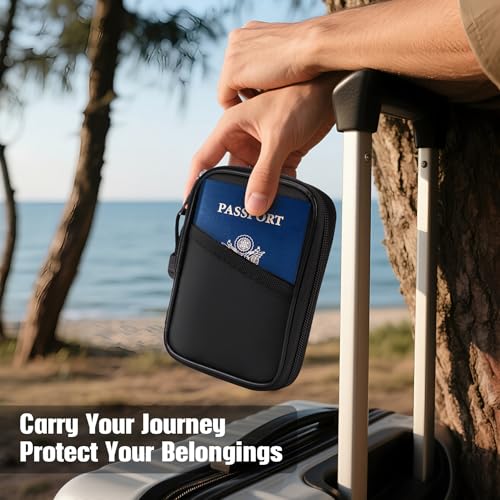 Grothery 5200°F Fireproof Passport Holder Office Essentials Fireproof&Waterproof Travel Document Organizer 8 Layer Heat Insulated Passport Cover for Men Women Hold Passport, Ticket, ID, Portable Black
