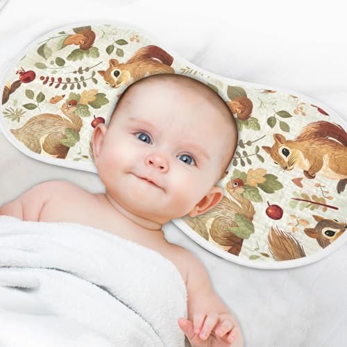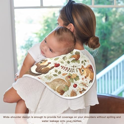 Squirrel Cartoon Watercolor Cotton Large Burp Cloths for Baby silky and Absorbent Burp Rags for Gender Neutral Set of 2, 22x11in