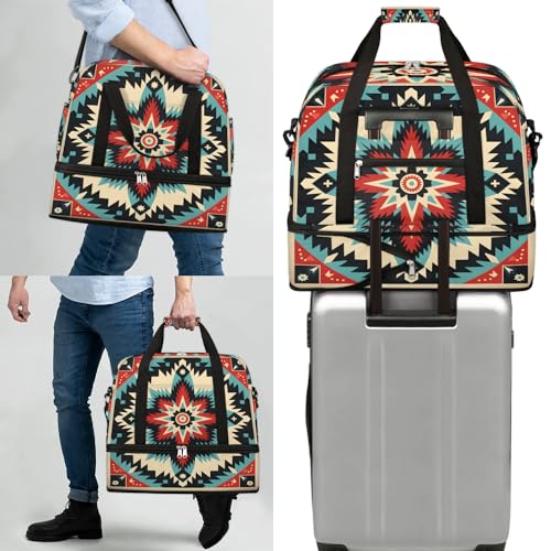 More information about Retro Boho Colorful Flora Travel Duffle Bag, Collapsible Travel Bag Sports Gym Bag With Shoes Compartment Weekender Bag Overnight Bag For Women Men