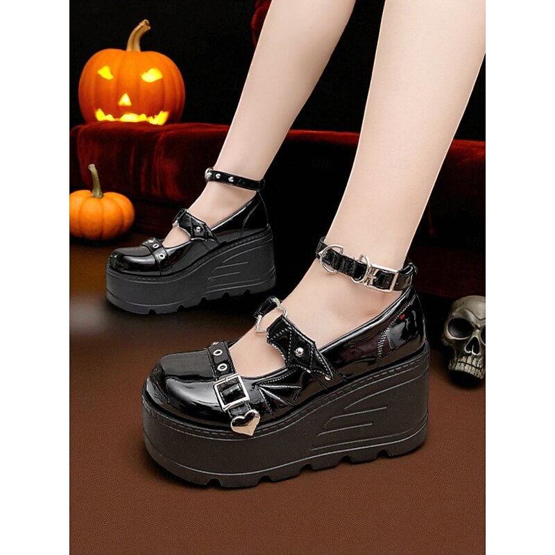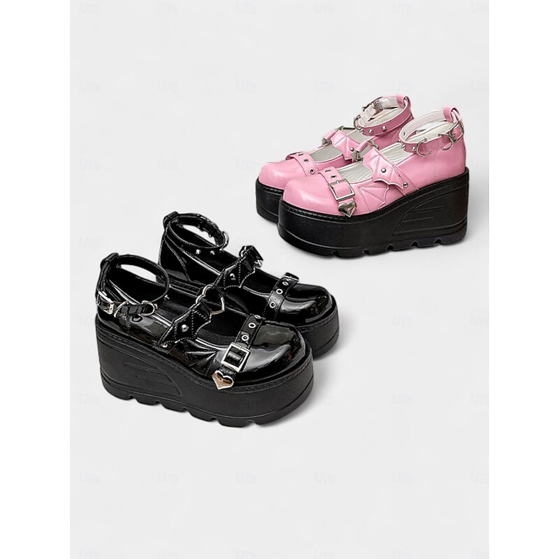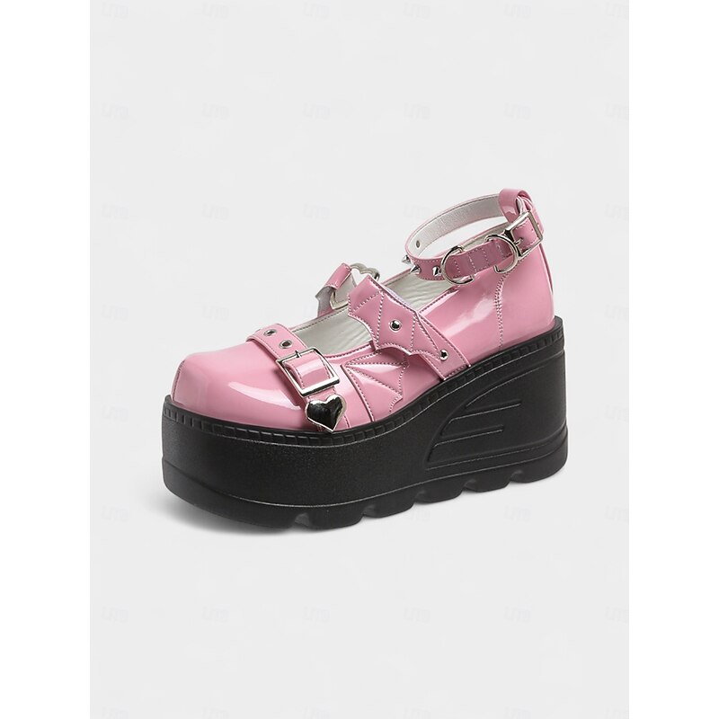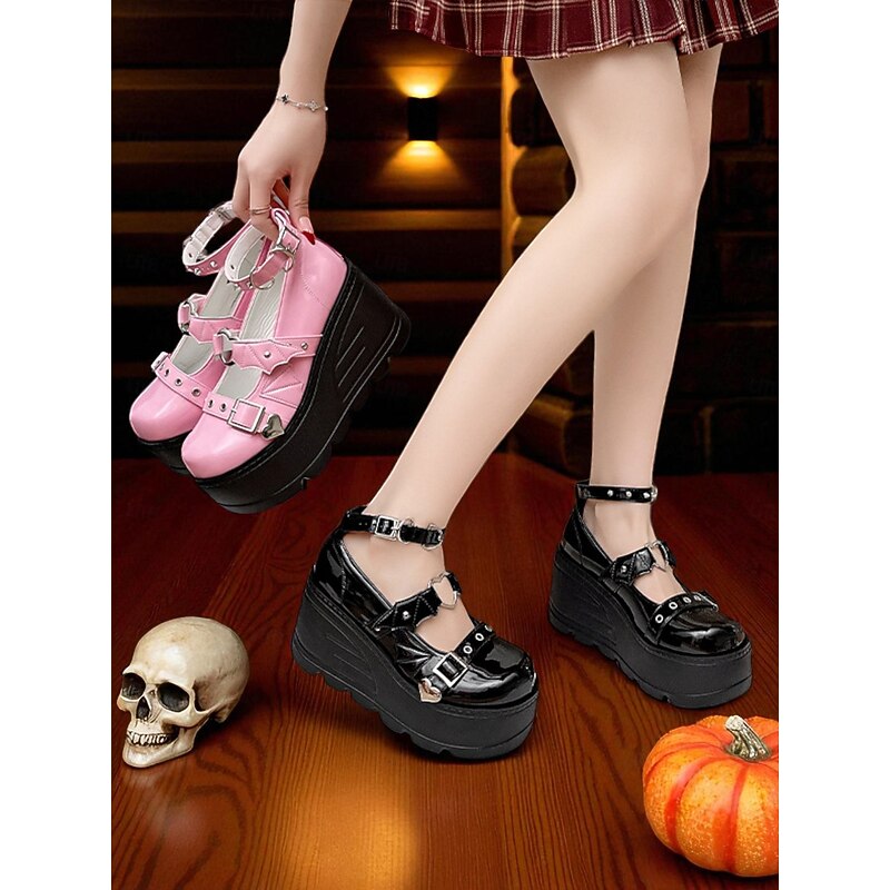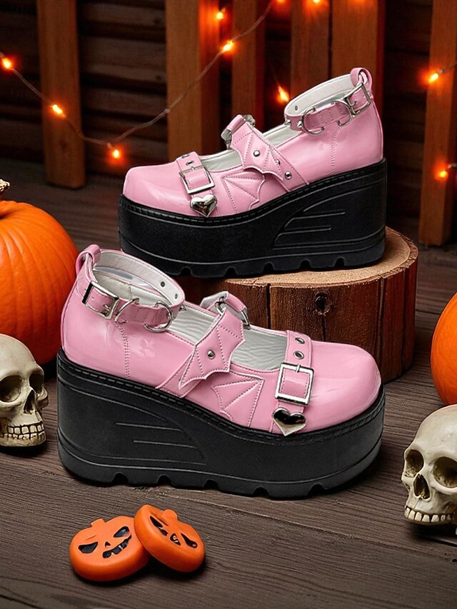 $46.99 - Women's Pink Platform Mary Jane Shoes – Gothic Punk Heart Buckle Bat Wing Details, Chunky Wedge Heel, Patent Faux Leather Footwear for Halloween, Cosplay and Alternative Fashion Events 2025. Shop for cheap Shoes For Women online? Buy at lightinthebox.com on sale today!