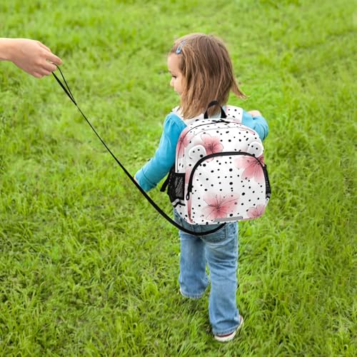 Kid's Backpack for Boys & Girls Toddler Bag Pink Flower Polka Dot Pattern Backpack with Safety Leash 1