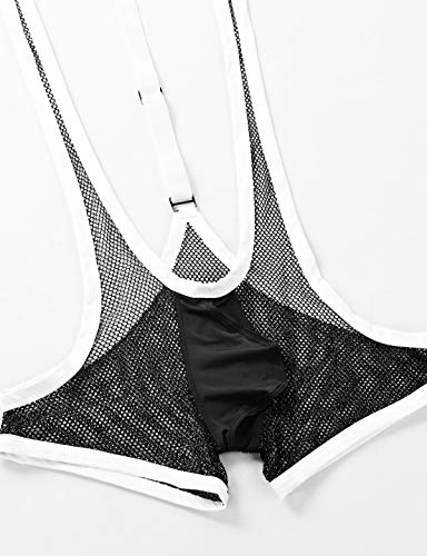 YiZYiF Men's See Through Mesh Fishnet Suspenders Wrestling Singlet Leotard Hipster Bodysuits 1