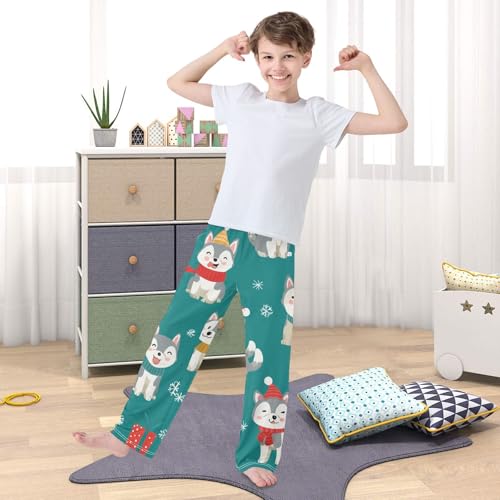 Husky Christmas Snow Boys Long Pants Soft Trousers Elastic Waist Kids Lounge Bottoms with Pockets S-XL 6