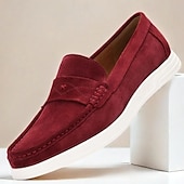 More information about Men's Premium Cowhide Burgundy Suede Moccasins, Elegant Minimalist Design for Casual and Office Wear