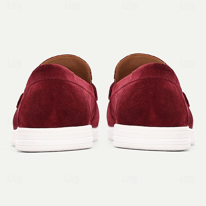 Men's Premium Cowhide Burgundy Suede Moccasins, Elegant Minimalist Design for Casual and Office Wear 1