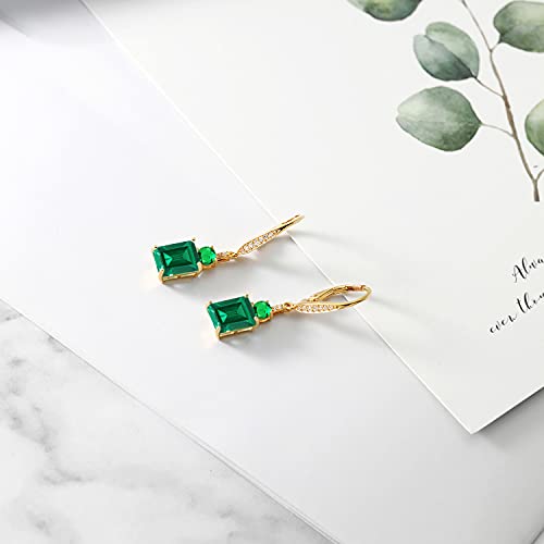 sought-after ! Gem Stone King 18K Yellow Gold Plated Silver Green Nano Emerald Dangle Earrings For Women (4.60 Cttw, Gemstone May Birthstone, Emerald Cut 9X7MM)