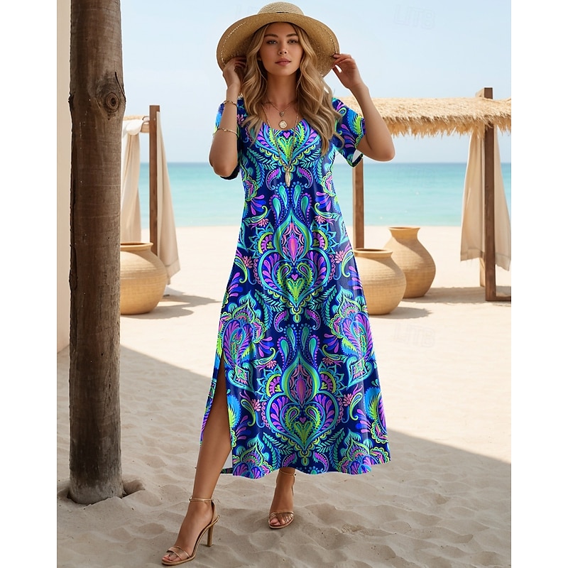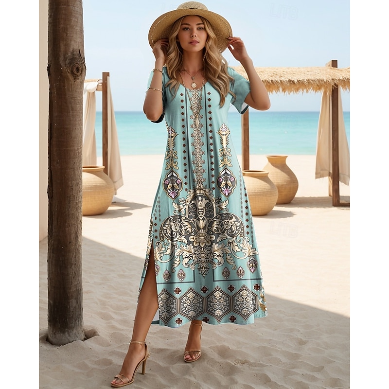 More information about Women's Midi Dress Sundress A Line Dress Vacation Casual Boho Butterfly Sleeve Beach Regular Fit Graphic Tribal Short Sleeve Crewneck Light Blue Black Gold Black Light Green Summer Spring