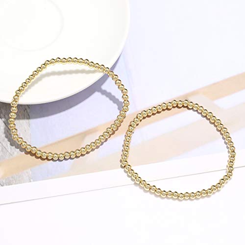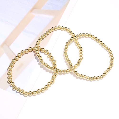 Gold Beaded Bracelet for Women 14 K Gold Plated Ball Beads Bracelet Stack Stretch String Friendship Bracelet Mens Classic Bold Gold Color Brass Beads Bracelet Set for Girls 4