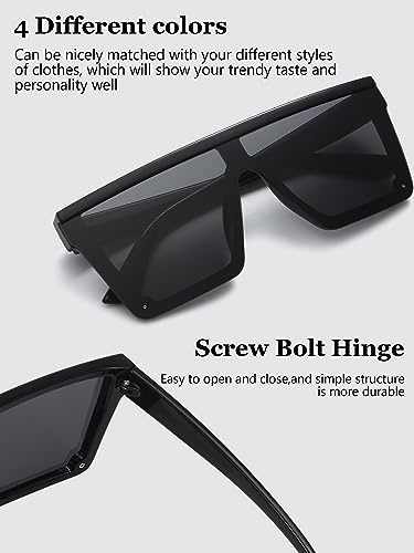 Frienda 4 Pairs Oversized Flat Top Sunglasses Vintage Square Sunglasses Unisex Square Shade Large Sunglasses for Women Men (Ice blue, Gray, Silver, Gradient Brown) 4