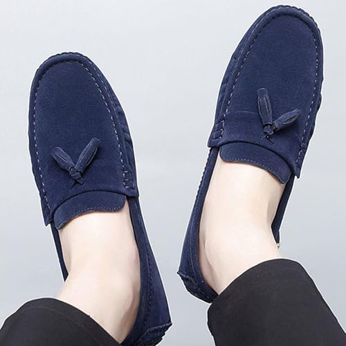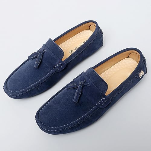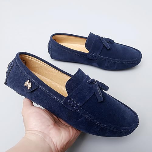Men's Suede Leather Driving Moccasins Slip-on Penny Loafers with Tassel Casual Comfort Dress Walking Boat Shoes 7